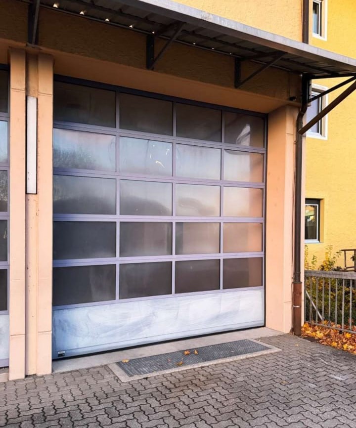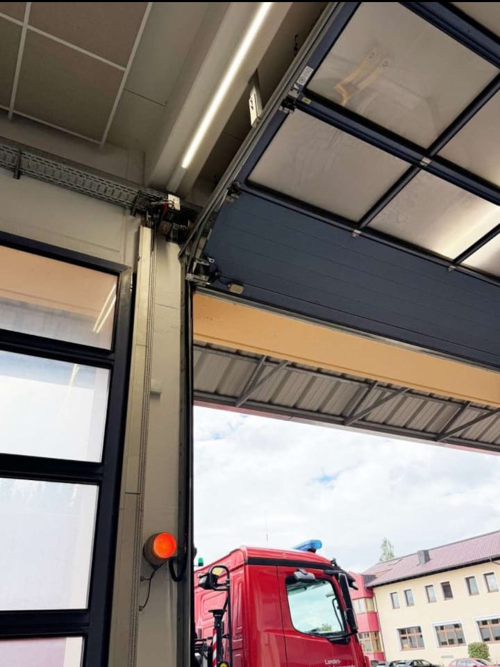 Ipari szekcionált motoros garázskapu.